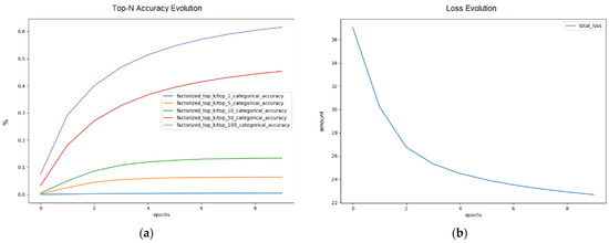 The total loss in this second experiment is still considered high for a good model, and under these conditions, recommendations may show few variations in the top-10, top-5 and mainly top-1 among users, as the model has low accuracy. Better scores are obtained for the top-50 and top-100 recommendations. However, the loss falls, and the model used can present even lower values in the total loss and higher accuracy rates. Briefly, hyperparameters can be tuned to ensure a better machine learning setup, such as percentage division between training and testing data, scaling of the characteristics used by embeddings and still learning rate. Wine features such as acidity, body and grape varieties can be added to improve the recommender model.