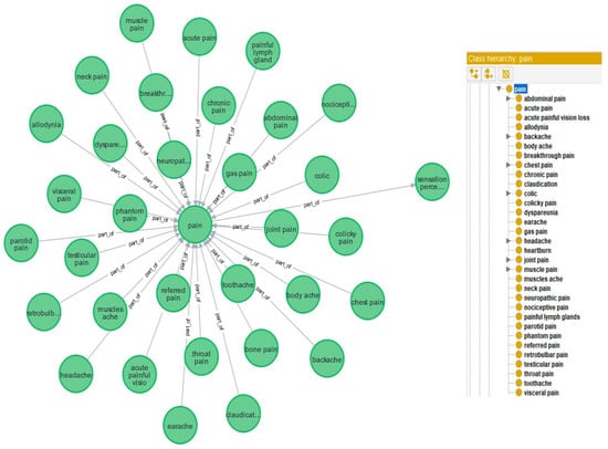 A subgraph of ‘pain’ symptom with its superclass, subclasses, and the corresponding SYMP subtree.
