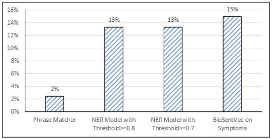 Chart showing the impact of the different entity-linked models on the percentage of scraped symptoms interlinked with symptoms ontology.