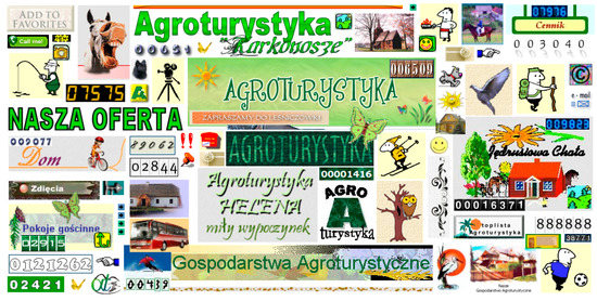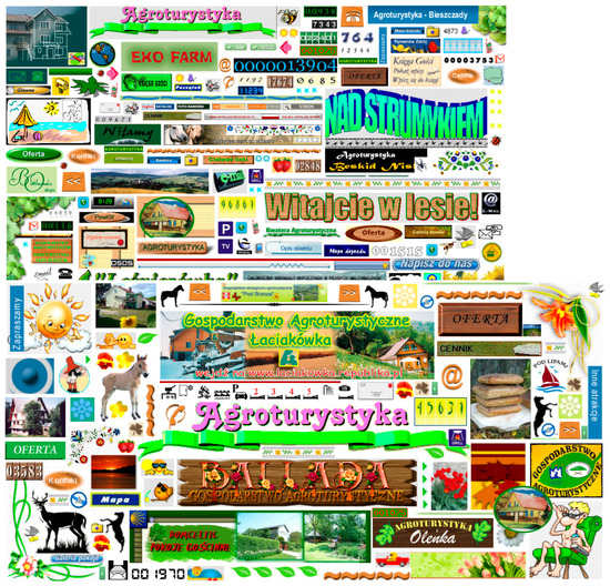 Websites of agritourism farms rarely displayed rustic digital folklore. The graphic design was most often founded on ready-made banners and a proper name or motto that the owners believed to best represent the farm, such ‘On a stream’, ‘Welcome to the forest’, ‘Ballada Agritourism Farm’, or ‘Oleńka Agritourism Farms’.