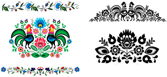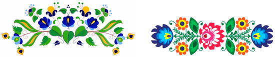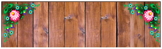 Digital Kashubian folklore against wood-resembling components. Source: https://www.kaszuby-checz.pl (accessed on 19 September 2022).