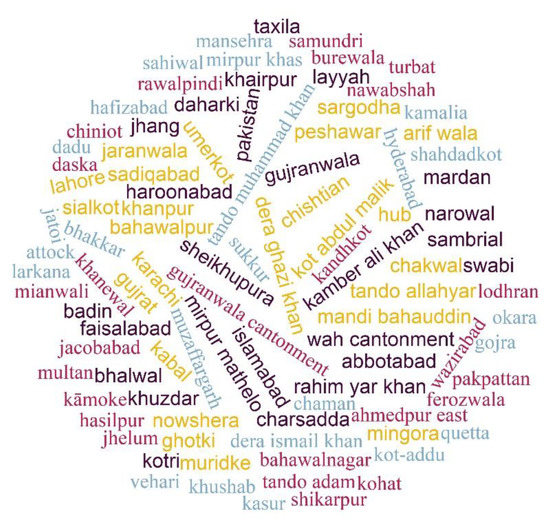For example, if any of the words in Figure 2 are mentioned in the text of each tweet, the name of the country of Pakistan is considered as the location of that tweet.