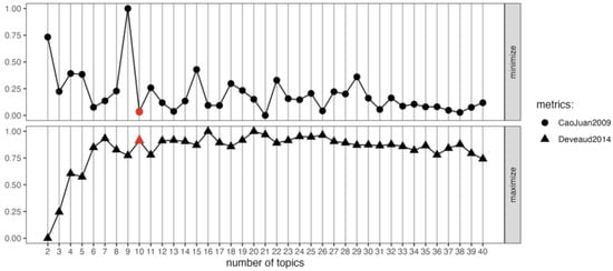 The author tuned the most suitable number of topics using the algorithms in the “ldatuning” R package. After specifying the suitable number of topics, hyperparameters (alpha and beta) were tuned using the “LDATuning” R package.