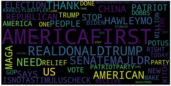 The dataset contains hate speech tweets prevalent during the capitol riot. To summarize the most popular words, we took the help of word cloud visualization to understand the distribution of hate words in the dataset. The tweets posted during the riot consisted of words, such as America-first, Donald trump, maga, stop Biden, etc., signifying the hatred among the users, as evident through the word cloud shown in Figure 2.