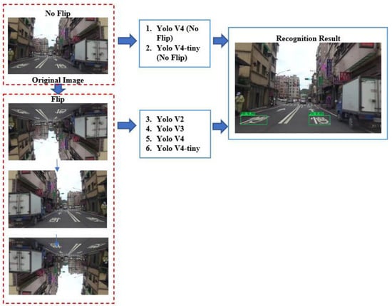 Our systems are depicted in Figure 1. Particularly for the Yolo V2, Yolo V3, Yolo V4, and Yolo V4-tiny image processing systems, this study employs a number of CNN-based object detection techniques. Furthermore, we employ data augmentation, flip or no flip. Specifically, in this experiment, we train the model to distinguish among objects on the left and right sides of the screen that are classified as independent classes [47,48,49].