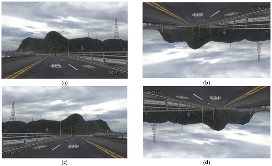 Flipped image condition. (a) Original image; (b) Flipped vertical image; (c) Flipped horizontal image; (d) Flipped both images.
