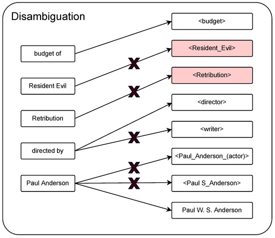 Knowledge base question answering (KBQA) [1] has recently been widely used in various fields, such as recommendation systems [2,3,4] and chat bots [5,6]. KBQA enables users to obtain direct answers to questions from a structured knowledge base. Typically, this is accomplished by semantic-parsing-based methods (SP-based methods) [7]. The process can be summarized as three steps [8]: entity linking, relation linking, and query generation. The accuracy of the final query results is obviously directly impacted by the accuracy of the entity and relation linking. Hence, it is crucial to optimize the performance of the entity and relation linking tasks [9,10,11].