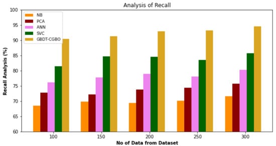 Recall Analysis of GBDT-CGBO method with existing system in percentage.