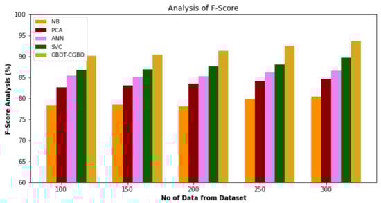 F-Score Analysis of GBDT-CGBO method with existing system in percentage.