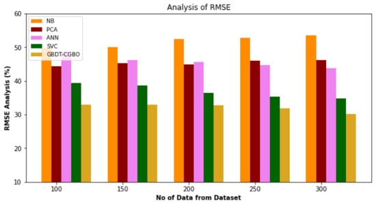 RMSE Analysis of GBDT-CGBO method with existing system in percentage.