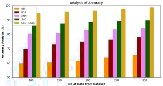 Accuracy Analysis of GBDT-CGBO method with existing system in percentage.