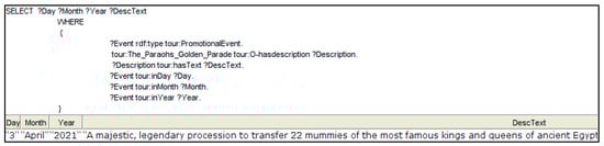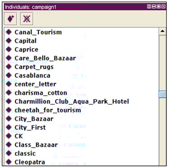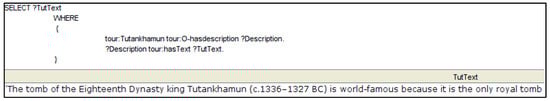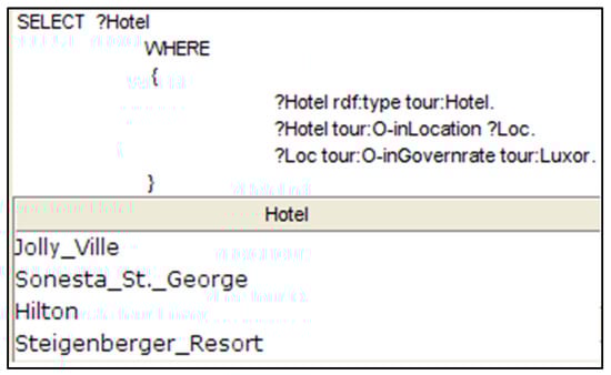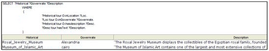 The initial stage entails describing the ontology data in a textual document using natural language. The ontology metadata vocabulary (OMV) [51] is a typical suggestion for the ontologies’ description. It enables ontologies to be easily accessed, exchanged over the Internet, and integrated across different domains. The Egyptian tourism ontology’s OMV is listed in Table 4.
