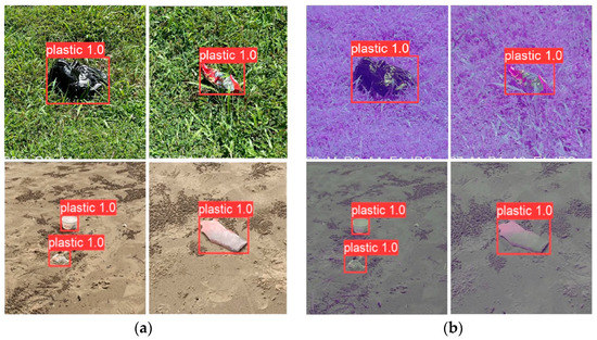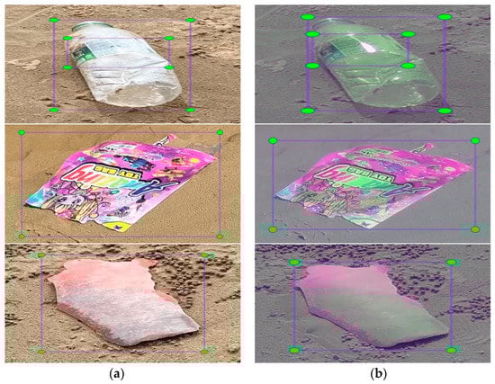 - Tamin, O.; Moung, E.G.; Dargham, J.A.; Yahya, F.; Omatu, S.; Angeline, L. A comparison of RGB and RGNIR color spaces for plastic waste detection using the YOLOv5 architecture. In Proceedings of the 4th IEEE International Conference on Artificial Intelligence in Engineering and Technology, IICAIET 2022, Kota Kinabalu, Malaysia, 13–15 September 2022. [Google Scholar] [CrossRef]