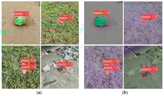In this subsection, we present and analyze the performance of the proposed model using a fusion of RGB and RGNIR datasets that contained a greater number of images of plastic waste. The purpose of fusing the RGB and RGNIR datasets in the training dataset was to investigate whether the fused dataset could cause the model to learn the characteristics and features of plastic waste better, potentially leading to improved performance.