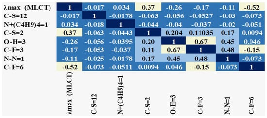 3.3. Prediction of λmax Based on C-S, N+(C4H9), O-H, C-F, N≡N Bonds