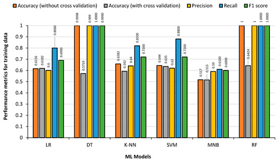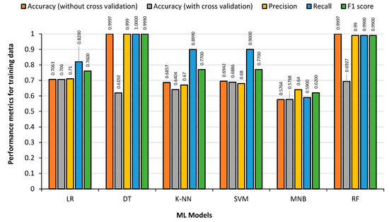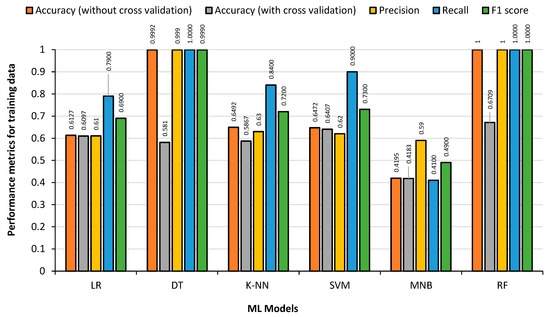 The accuracy of the model can be determined by taking the number of correct predictions and dividing it by the total number of predictions made (Equation (5)). If all of the predictions are correct, then the accuracy of the model is expected to be 100%. This means that all the predictions must be either true positives or true negatives, with no false predictions.