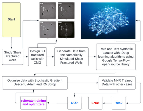 Building up models generates data that emanates from intelligent tools. Being aware of the difficulty in reading log data, it is practical to use synthetic data for modeling, making a clear-cut validation with real data. However, in the absence of physics-driven simulations, as demonstrated in Figure 1, data-driven model analysis can be the easiest computationally intelligent tool at hand. Moreover, the wholistic parameters involved in modeling data generation originate from the initial reservoir conditions, hydraulic fracture characteristics, and hydrocarbon production. Figure 6 provides the detailed methods and flow chart for an effective propped fracture prognosis.
