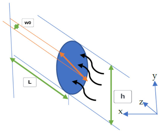 Figure 8 schematically demonstrates a one-wing infinite homogenous two-dimensional formation hydraulic fracturing model that was originally proposed by Perkins and Kern, also known literally as the P-K equation [44]. This fracture flow diagram depicts how high-pressure proppants or fluids move in the direction of the x-axis with a constant height of h on the y-axis. The diameter of the fracture morphology on the z-axis remains the width. It is interesting to note that the fracture length is exponentially greater than that of a constant height and width. These are mathematically represented based on the following P-K assumptions: