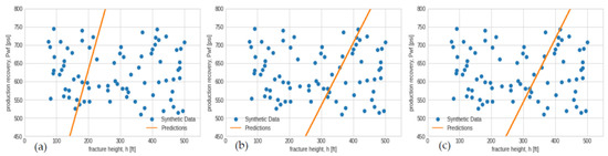 Fracture height linear regressor model and optimizer performances; (a) SGD final loss = 347.88, (b) Adam final loss = 221.07, (c) RMSprop final loss = 220.25.