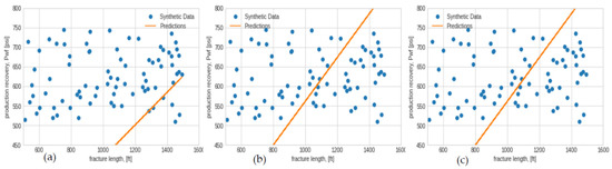 Nonetheless, there has also been abundant research on data-driven models for the prediction of hydraulic fracturing well stimulation. Dong et al. [24] optimized fracture parameters using data-driven algorithms. The authors explain that there is a high cost and driven uncertainty associated with fracture spacing and half-length. For this reason, the research expounded on the use of an evolutionary optimization algorithm (EOA) for parametric fracture optimization. Hence, their resulting numerical simulation, based on a gradient-boosted decision tree, random forest, support-vector machine, and multilayer perception (MLP), demonstrated in Figure 4, shows that among all the four production-prediction models, one of the EOA, i.e., particle swarm optimization (PSO), produced the highest net present value.