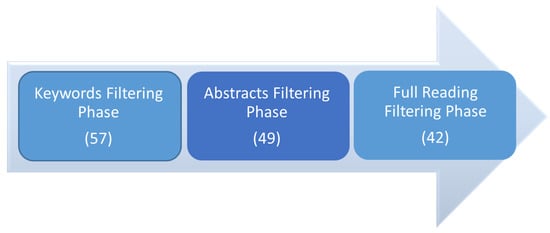 This section presents the research articles that were filtered to select the most relevant studies on colorectal cancer prediction using ML and DL algorithms, as summarized in Figure 3. These phases consist of (1) keyword filtering, (2) abstract filtering, and (3) full reading filtering.