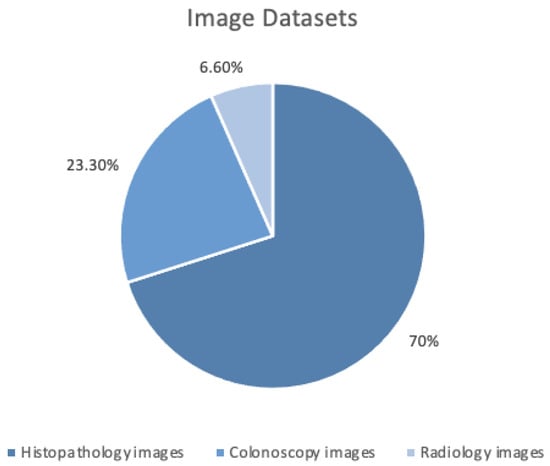 Collins et al. discussed how to detect colorectal and esophagogastric cancer tissue using an automatic CAD tool via an optical image. The dataset is from a public university hospital in Leipzig and includes 10 patients with Esophagogastric cancer and 12 patients with colon cancer. After studying the receiver operator curve–area under the curve (ROC–AUC) performance in the colon dataset in different models such as radial basis function (RBF)–SVM, MLP, and 3-dimensional convolutional neural network (3D CNN), it has been concluded that the 3D CNN model achieved a more accurate performance to detect colon cancer with an accuracy of 93% [20].