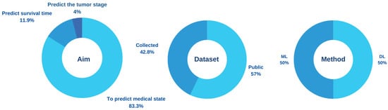As indicated in Figure 4, the reviewed study articles are categorized as follows: (1) the aim of the prediction, (2) the method of the prediction, and (3) the dataset used in the prediction.