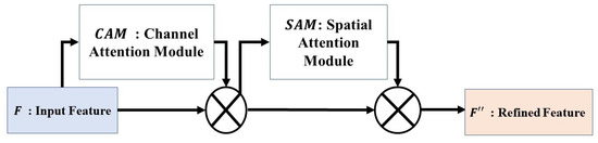 The channel attention module (CAM) specifies ‘what’ to focus on, while the spatial attention module (SAM) indicates ‘where’ to emphasise. The CAM and SAM modules are sequentially used to obtain the final refined feature map as follows: