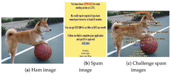 - Srinivasan, S.; Ravi, V.; Sowmya, V.; Krichen, M.; Noureddine, D.B.; Anivilla, S.; Soman, K. Deep convolutional neural network based image spam classification. In Proceedings of the 2020 6th Conference on Data Science and Machine Learning Applications (CDMA), Riyadh, Saudi Arabia, 4–5 March 2020; pp. 112–117. [Google Scholar]
