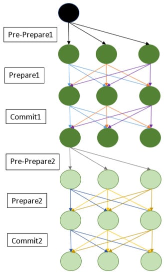 Figure 1). However, for a model with an increasing number of participants, another PBFT variant is needed. This could be executed on a double-layer network structure, which could offer improved scalability.