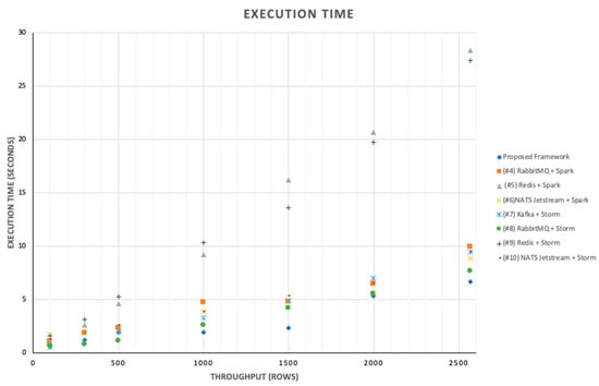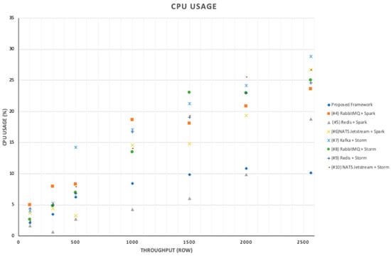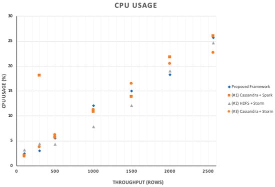 Although the proposed framework did not perform as well as expected in all aspects during the Historical Data Processing scenario, it demonstrated outstanding performance in terms of execution time, outperforming all other combinations. This can be attributed to the utilization of Apache Spark’s Resilient Distributed Datasets (RDD), which leverages more CPU and memory usage to cache a large amount of data in a distributed manner, resulting in higher efficiency in the Map-Reduce operation.
