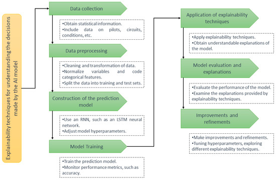 The methodological approach seeks to use explainability techniques to improve the understanding of the decisions made by the AI model in predicting the performance of a Formula (1) driver, as shown in Figure 1.