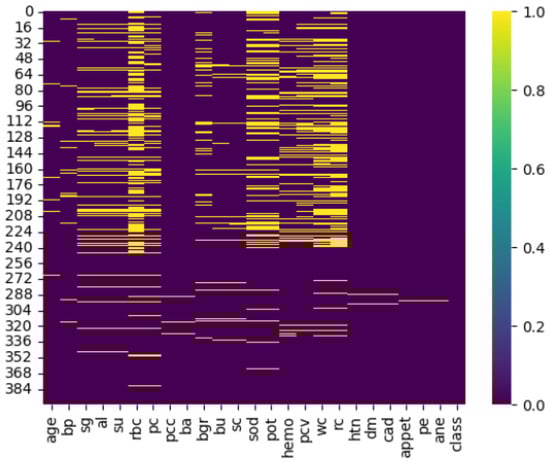Handling missing data requires choosing appropriate statistical methods based on the extent of missing data and the significance of the missing feature. Traditional techniques like mean, maximum, and mode work well with a low proportion of missing values [31]. In our study, we encountered a substantial amount of missing data, as illustrated in Figure 2.