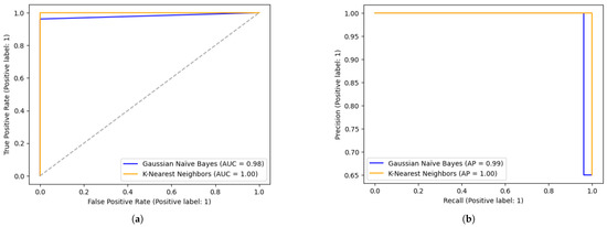 Figure 5 displays the evaluation of the model through the area under the ROC curve and the precision–recall curve. The k-nearest neighbor model achieved the highest performance, indicating its superiority as the best model for the early detection of CKD.