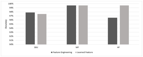 Following the result analysis of the proposed methods, Table 7, Table 8 and Table 9 compare the proposed method with the state-of-the-art methodologies for the SBU, HF, and MF datasets, respectively. The evaluation of the results indicates that the proposed method achieved reliable accuracy. The tables also illustrate the increased effectiveness of the feature engineering method compared with the learned features method in the SBU dataset, but they performed equally on the MF dataset, while the learned features outperformed the feature engineering method for the HF dataset.