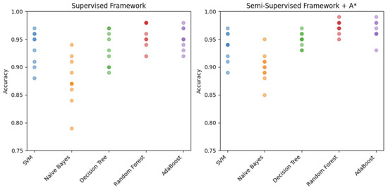 - Semi-Supervised Framework + A*: this is the innovative framework we propose in which only data with certified labels are used, visually described by diagram B in Figure 2.