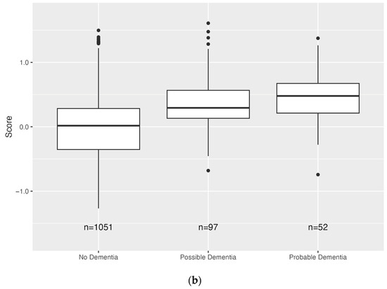The following supporting information can be downloaded at https://www.mdpi.com/article/10.3390/bdcc7040167/s1: Figure S1: Distribution of scores by dementia status and race (BA: Black American; WA: White American) for Veterans in the Training Sample (n = 5000 in each dementia status group for each race); Figure S2: Distribution of scores by race (BA: Black American; WA: White American) for Veterans in the Validation Sample (n = 10,000 for each race; n = 600 had chart review for each race); Figure S3: Receiver operating characteristic (ROC) curves based on observed values of sensitivity and specificity for Black American (BA) and White American (WA) Veterans who had chart reviews; Table S1a: Top 20 most important variables in the support vector machine (SVM) model for Black American (BA) Veterans, ranked by absolute value of variable weight in the model; Table S1b: Top 20 most important variables in the support vector machine (SVM) model for White American (WA) Veterans, ranked by absolute value of variable weight in the model.