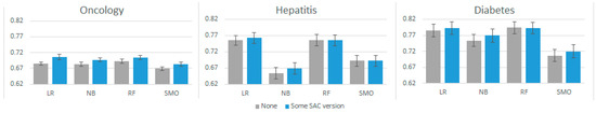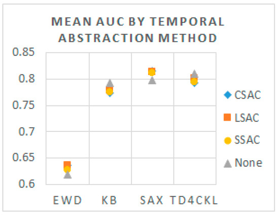 Thus, in the current study, we explored the application of semantic considerations to symbolic time-intervals mining, and to classification and prediction tasks, in medical domains. The current study complements and significantly extends into new grounds a previous study of ours in which, in addition to the main methods, we had very briefly introduced, as a secondary method, the SAC principle and had shown, among other related results, that pruning discovered temporal patterns in clinical data using the SAC constraint enhanced the consistency of discovering the same temporal patterns in similar rates in similar patient populations [28]. The current study examines, for the first time, through the use of several machine learning methods, the implications of the use of the SAC principle for the tasks of classification and prediction, and the exploitation of the SAC principle for a considerable reduction of the number of temporal-pattern features used by these machine-learning methods, without any loss of performance.
