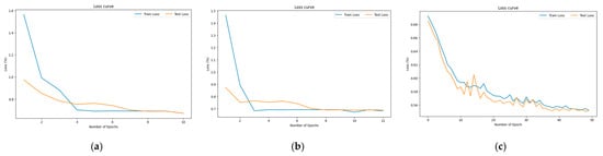 Deep learning model loss plots. (a) Loss curve—CNN; (b) Loss curve—LSTM; (c) Loss curve—BiLSTM.