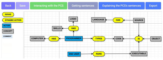 PCS-AI v1.0 is a web-based software. After authentication processes, a screenshot of the pre-conceptual schema visual editor of the PCS-AI v1.0 software is depicted in Figure 5.