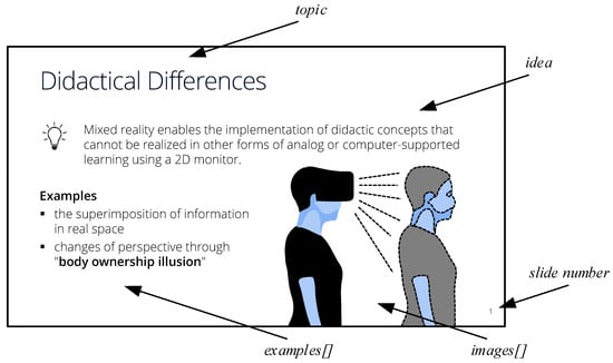 All PowerPoint slides used are annotated according to the annotation guidelines suggested in []. Examples for annotations are ‘Chapter’, ‘Topic’, ‘Subtopic’, ‘Keywords’, ‘Abbreviation’, ‘Definition’, ‘Example’, ‘Objective’, ‘Quote’, ‘Equation’, ‘Image’, ‘Table’, ‘Diagram’, and ‘Slide Number’. On average, 6.7 annotations are used per slide, with a total of eighteen distinct annotation labels available. The system is designed for the easy implementation of additional labels. Since instructors use different labels for the entity classes, the given ontology can be extended. An example of an annotated PowerPoint slide is shown in Figure 3. The inclusion of semiannotations is useful because different types of entities can be handled and explicitly searched for in the PET system.