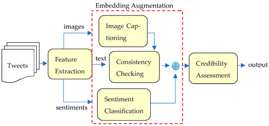 In this paper, we propose a deep learning approach to misinformation detection consisting of the following modules: feature extraction, image captioning, consistency checking, sentiment classification, and credibility assessment. The architecture is shown in Figure 1.