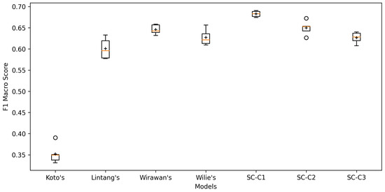 - Wirawan, C. Indonesian BERT Base Model (Uncased). 2020. Available online: https://huggingface.co/cahya/bert-base-indonesian-522M (accessed on 18 July 2023).