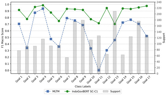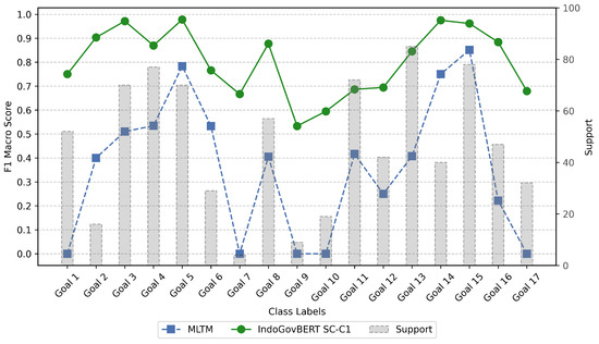 Nugroho et al. [34] used a Naïve Bayes model as a binary classifier to categorize Indonesian online newspaper articles, depending on whether they are related to SDGs or not. Angin et al. [35] proposed an approach with multiple binary classifiers, each focusing on a specific SDG. The authors deployed the RoBERTa model (also, see [36]) to distribute company sustainability reports into the SDG categories. Guariso et al. [37] discussed SDG classification as a multi-class single-label problem. Their research focused on assigning SDG labels to government budget programs in three countries—Mexico, Colombia, and Uruguay. The authors utilized several classifiers, including Naïve Bayes, Support Vector Machine, and Random Forest, and compared their performances for solving the task.