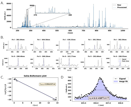 - Aguilera, J.; Aragón, C. Multi-element Saha–Boltzmann and Boltzmann plots in laser-induced plasmas. Spectrochim. Acta Part B At. Spectrosc. 2007, 62, 378–385. [Google Scholar] [CrossRef]