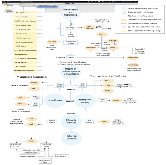 - Hafez, A.I.; Soriano, B.; Elsayed, A.A.; Futami, R.; Ceprian, R.; Ramos-Ruiz, R.; Martinez, G.; Roig, F.J.; Torres-Font, M.A.; Naya-Catala, F.; et al. Client Applications and Server-Side Docker for Management of RNASeq and/or VariantSeq Workflows and Pipelines of the GPRO Suite. Genes 2023, 14, 267. [Google Scholar] [CrossRef]