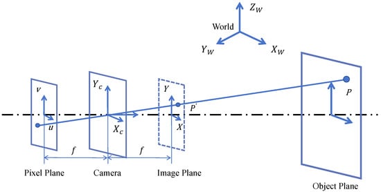 where is the location of the point-in-world coordinate, and and are the locations in pixel coordinates. Since , , , and are known, a transformation of the above equation yields Equations (9)–(11).
