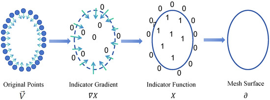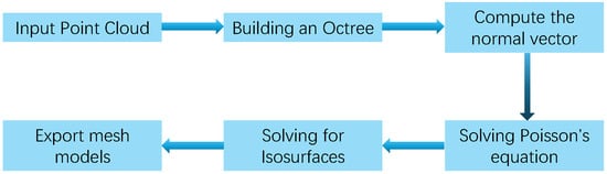 Poisson surface reconstruction is realized by a process involving constructing and solving Poisson’s equation and generating an equivalent surface, as shown in Figure 6.