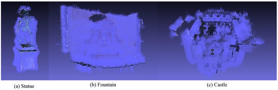 SFM combined with MVS can create denser point cloud data, computing the depth of each pixel in a 2D image by identifying corresponding points in multiple images and generating dense 3D point clouds based on these depth maps. Some open-source algorithms integrate SfM and MVS, such as COLMAP [], OpenMVS [], MVE [] and VisualSFM [].