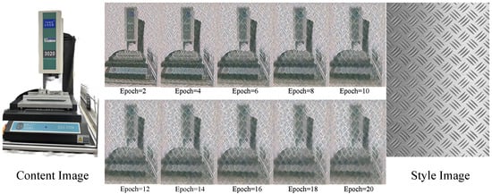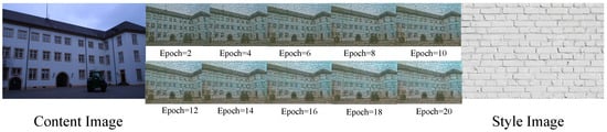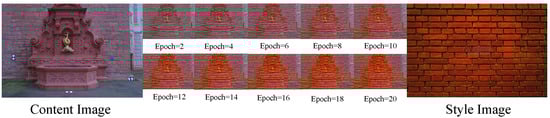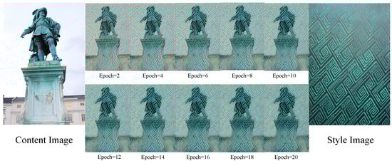 - Gatys, L.A.; Ecker, A.S.; Bethge, M.; Hertzmann, A.; Shechtman, E. Controlling perceptual factors in neural style transfer. In Proceedings of the IEEE Conference on Computer Vision and Pattern Recognition, Honolulu, HI, USA, 21–26 July 2017; pp. 3985–3993. [Google Scholar]